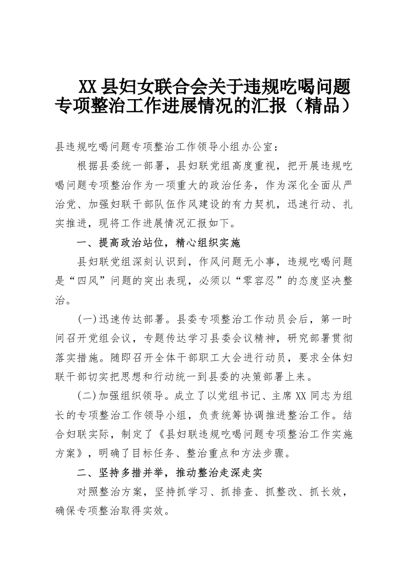 XX县妇女联合会关于违规吃喝问题专项整治工作进展情况的汇报(精品)