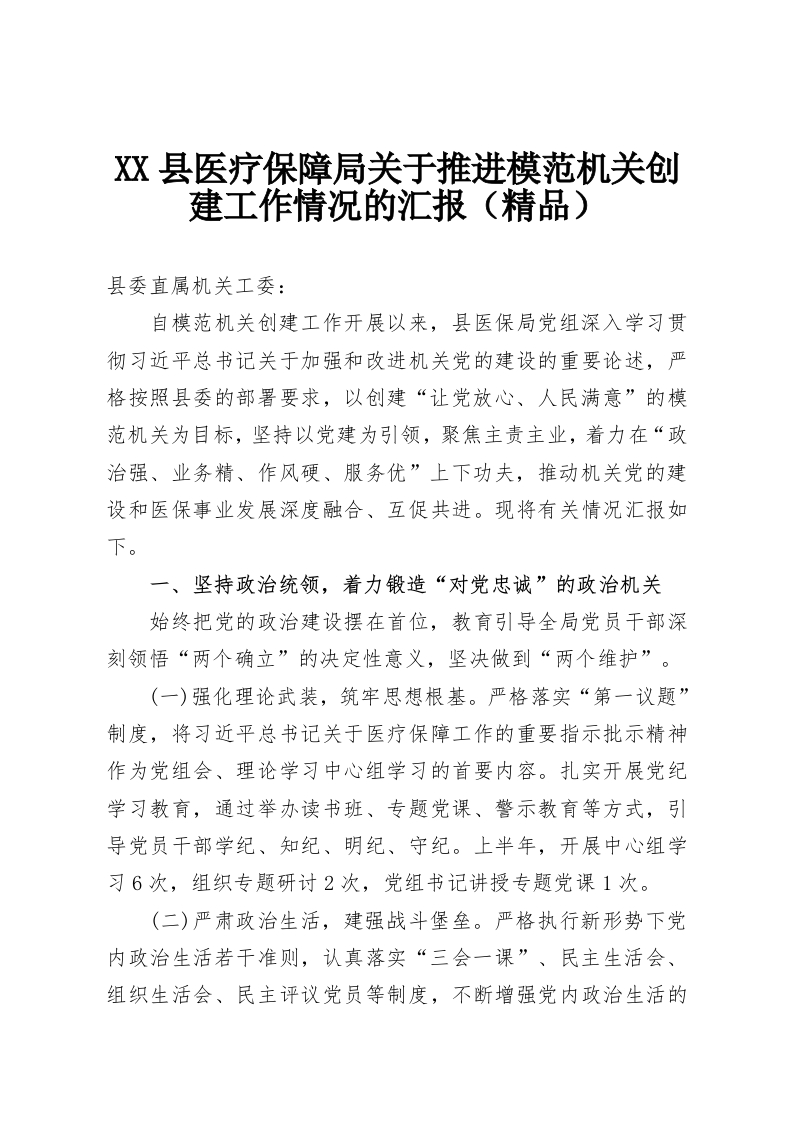 XX县医疗保障局关于推进模范机关创建工作情况的汇报(精品)