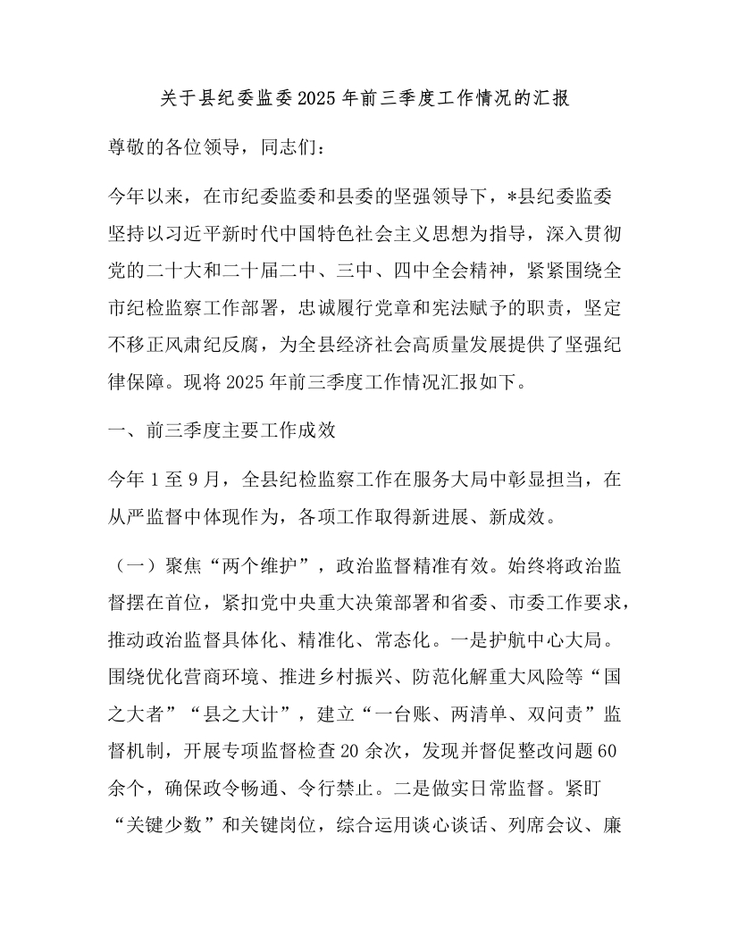 首页报告总结工作汇报关于县纪委监委2025年前三季度工作情况的汇报