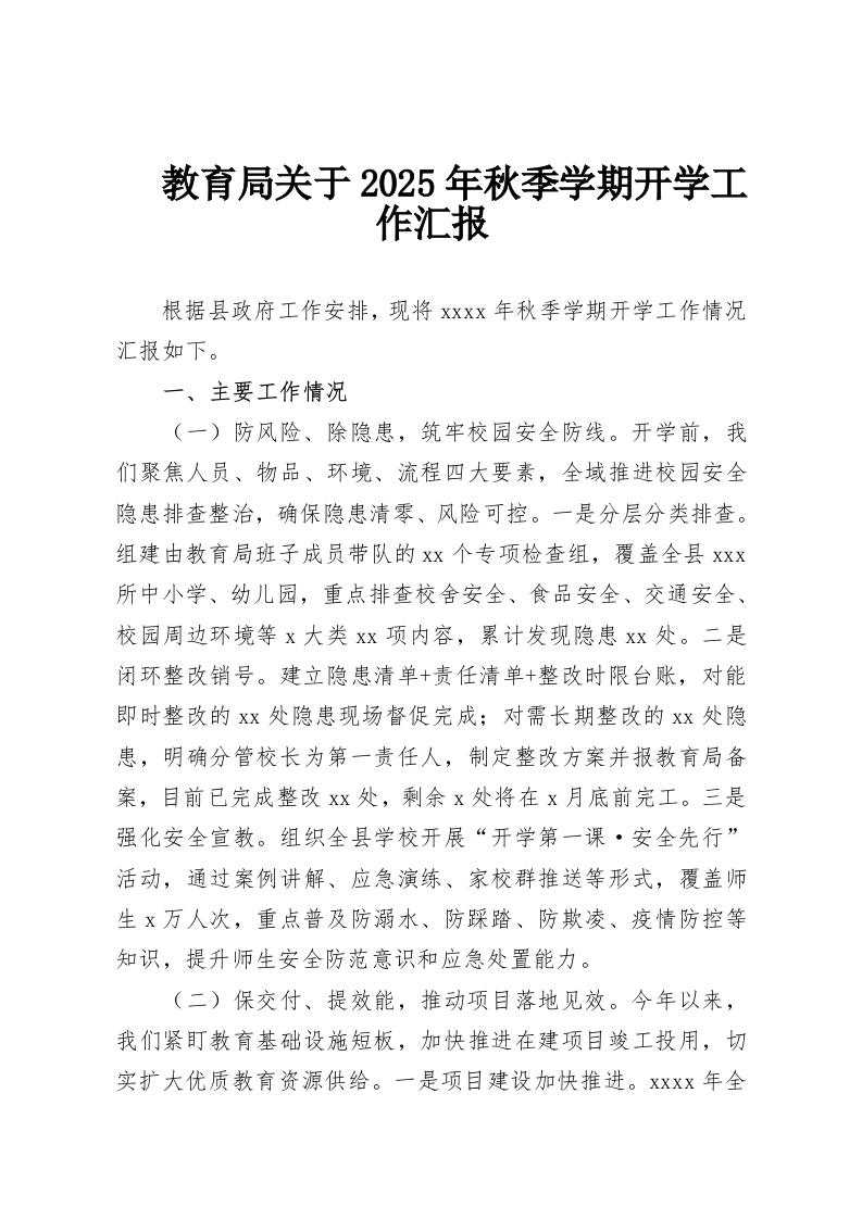 首页报告总结工作汇报教育局关于2025年秋季学期开学工作汇报