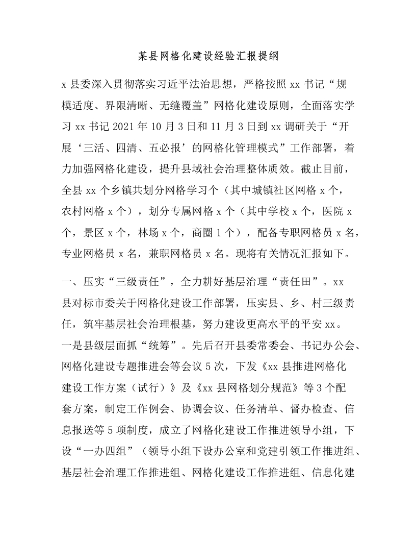 某县网格化建设经验汇报提纲