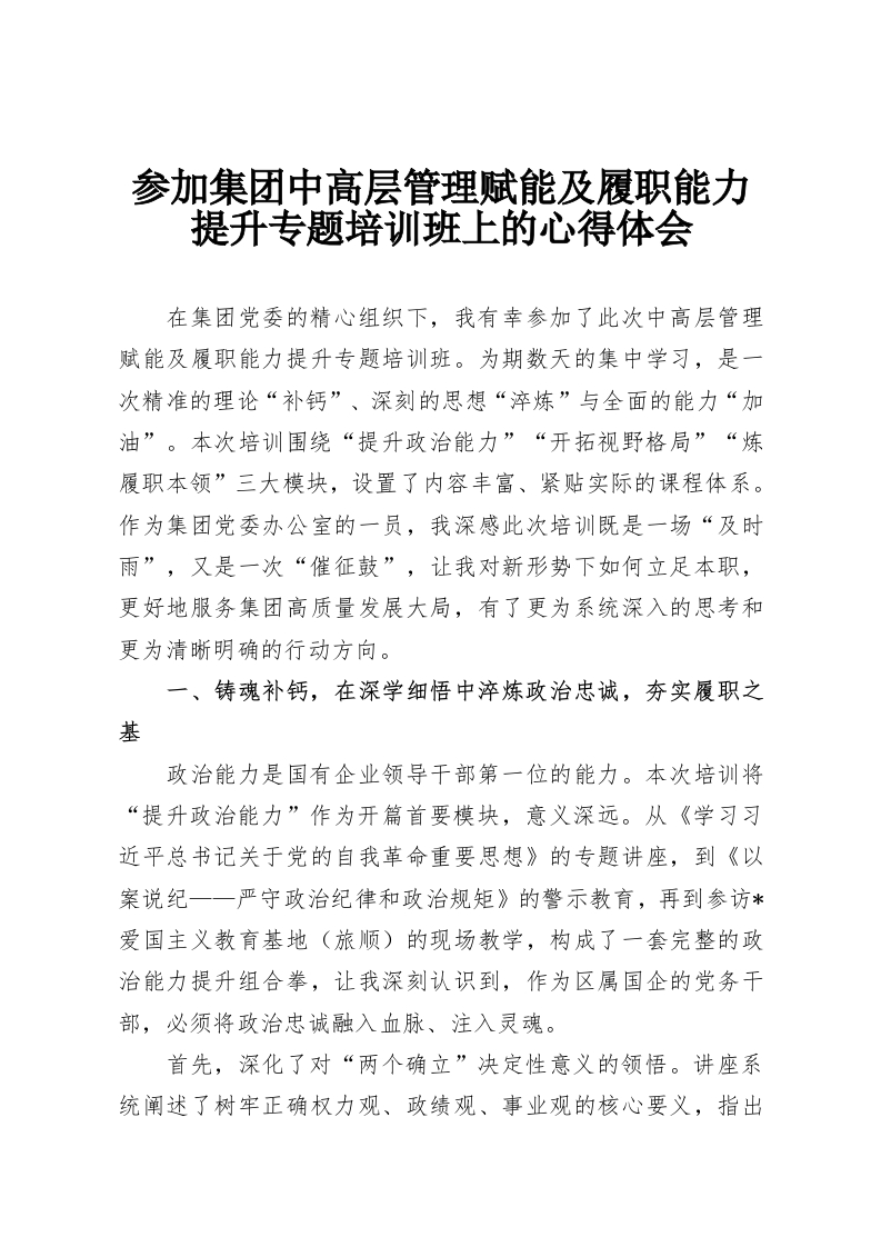 参加集团中高层管理赋能及履职能力提升专题培训班上的心得体会