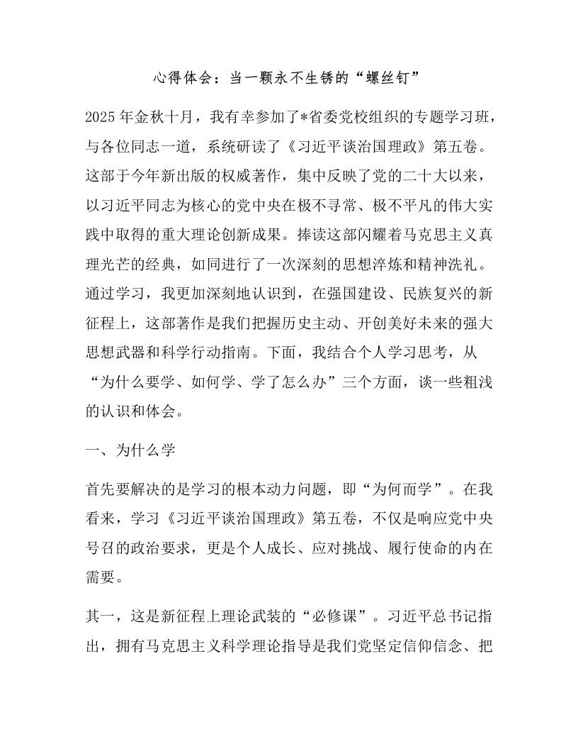 心得体会:当一颗永不生锈的“螺丝钉”