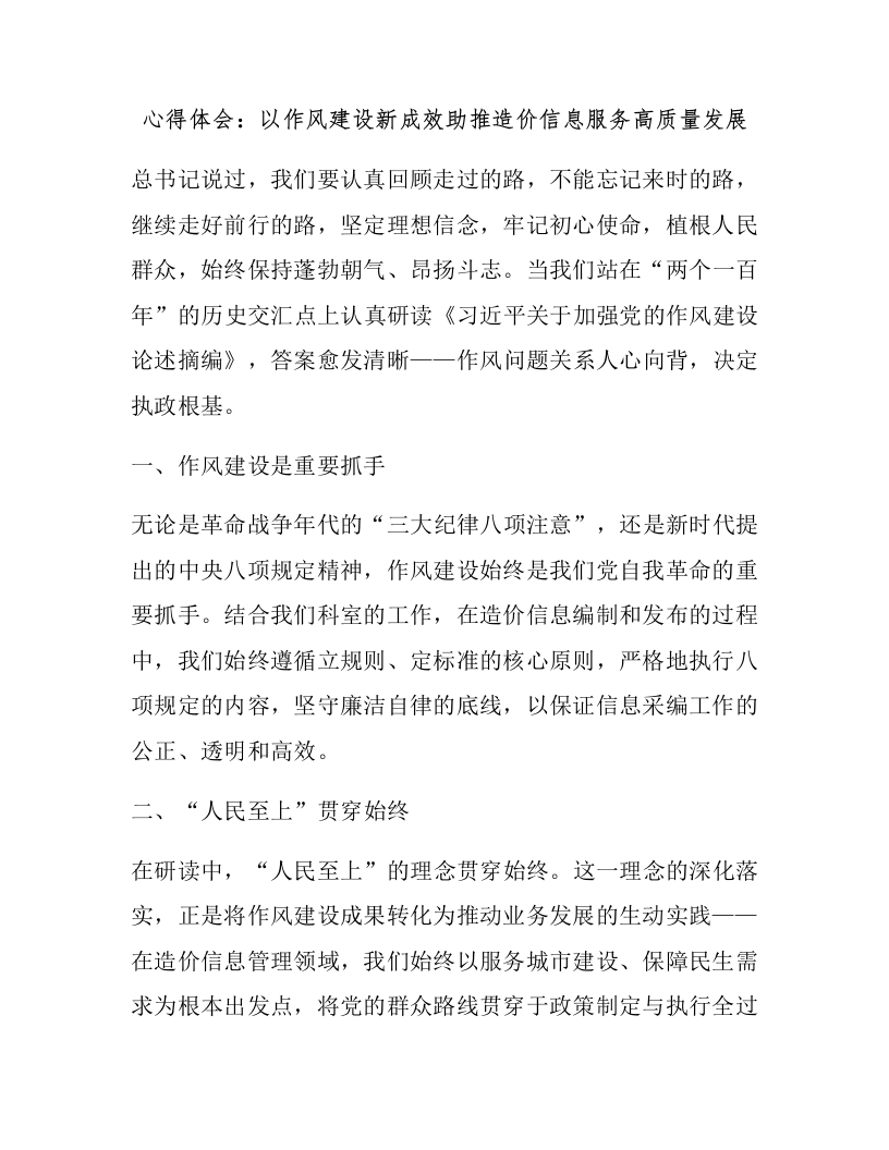 心得体会:以作风建设新成效助推造价信息服务高质量发展