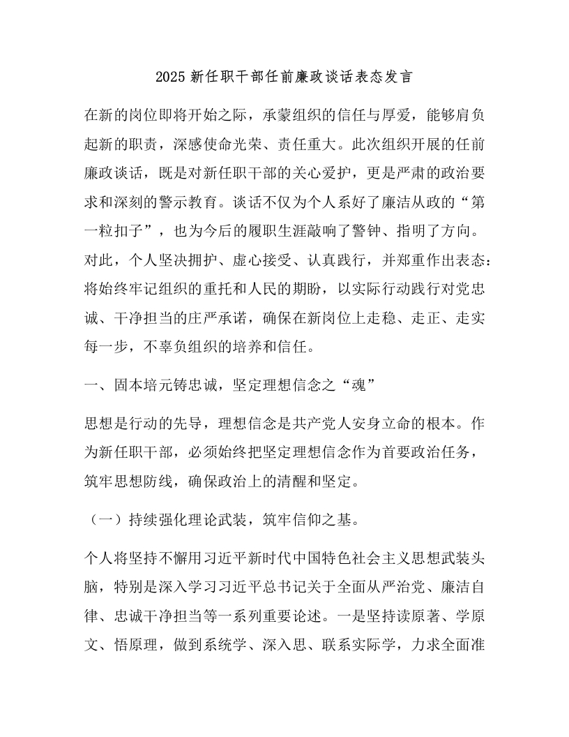 首页领导发言领导讲话2025新任职干部任前廉政谈话表态发言