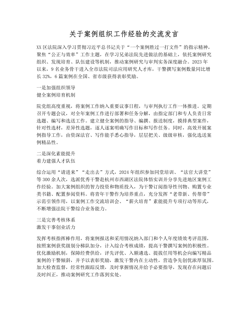 首页领导发言领导讲话关于案例组织工作经验的交流发言