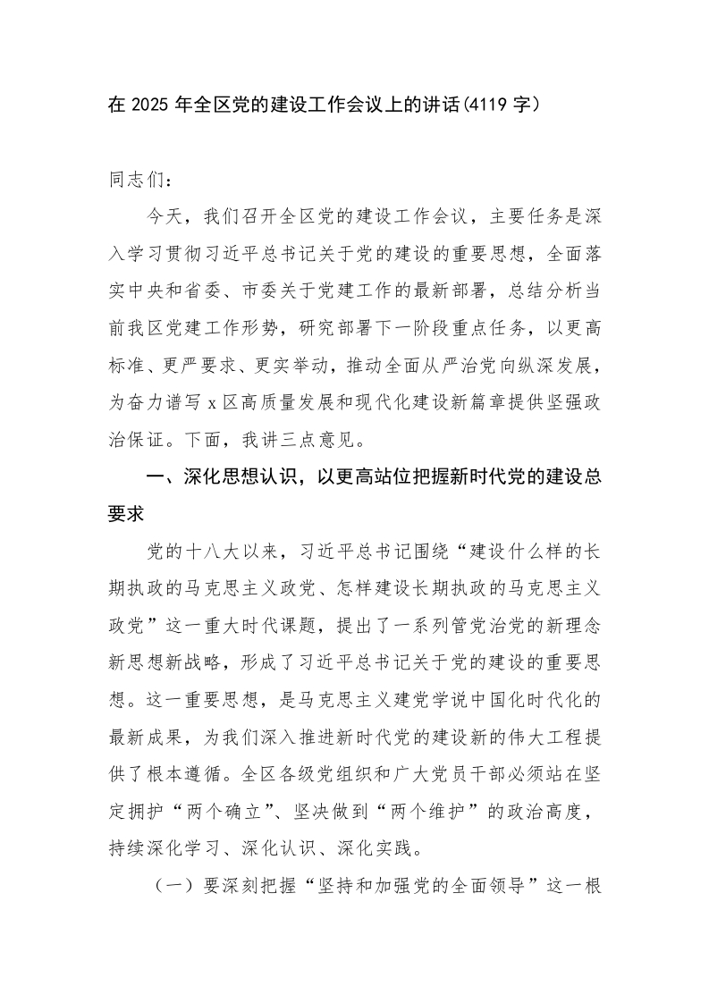 在2025年全区党的建设工作会议上的讲话(4119字)
