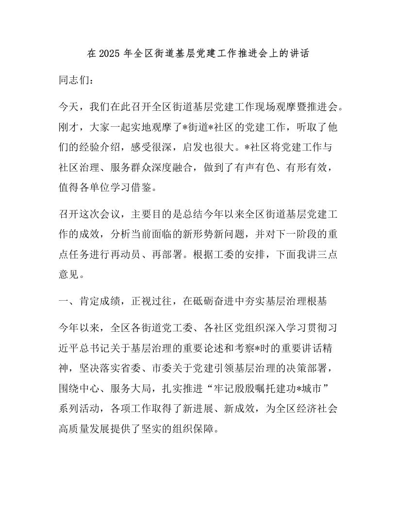首页领导发言领导讲话在2025年全区街道基层党建工作推进会上的讲话