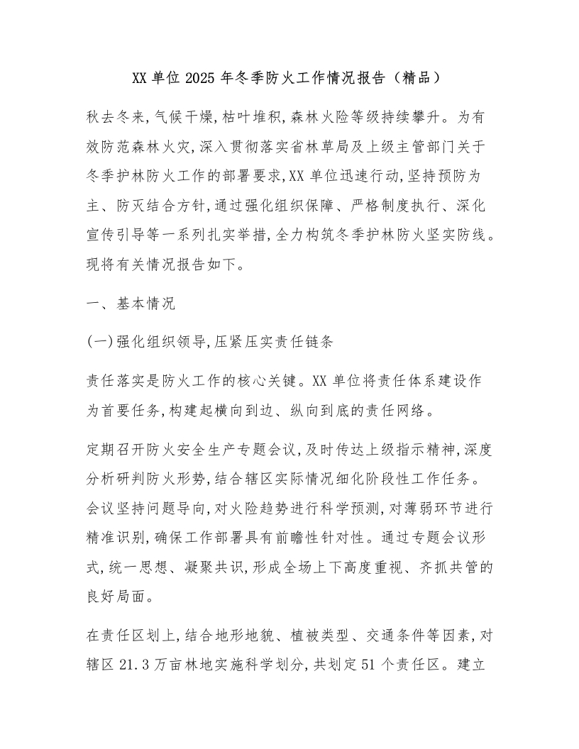 首页报告总结报告总结XX单位2025年冬季防火工作情况报告(精品)