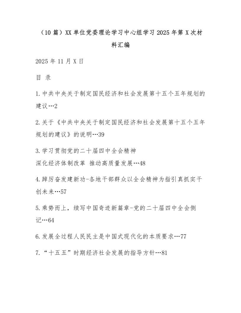 (10篇)XX单位党委理论学习中心组学习2025年第X次材料汇编