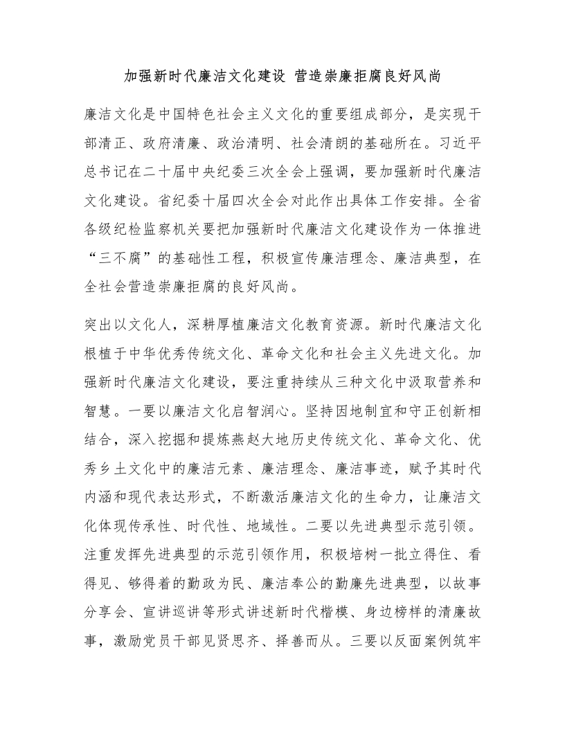 首页材料汇编综合材料加强新时代廉洁文化建设 营造崇廉拒腐良好风尚