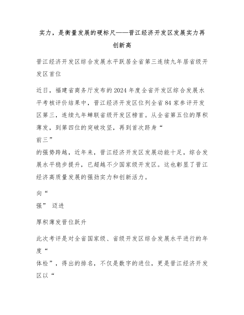 首页材料汇编综合材料实力,是衡量发展的硬标尺——晋江经济开发区发展实力再创新高