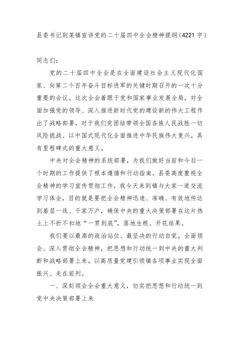 县委书记到某镇宣讲党的二十届四中全会精神提纲(4221字)