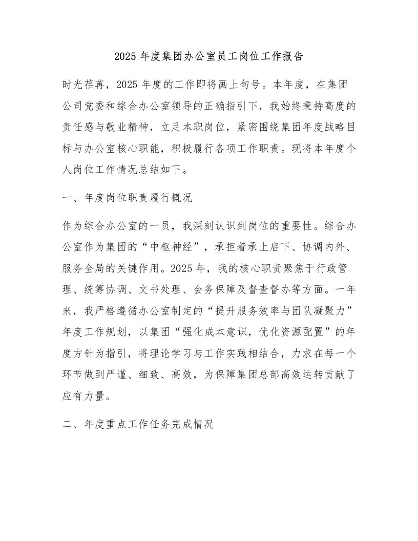首页报告总结报告总结2025年度集团办公室员工岗位工作报告