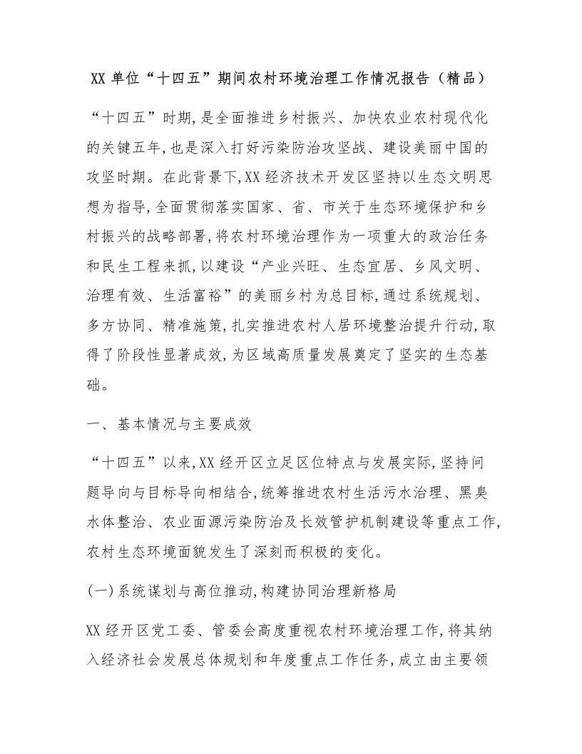 XX单位“十四五”期间农村环境治理工作情况报告(精品)
