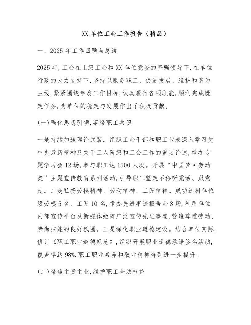 XX单位工会工作报告(精品)