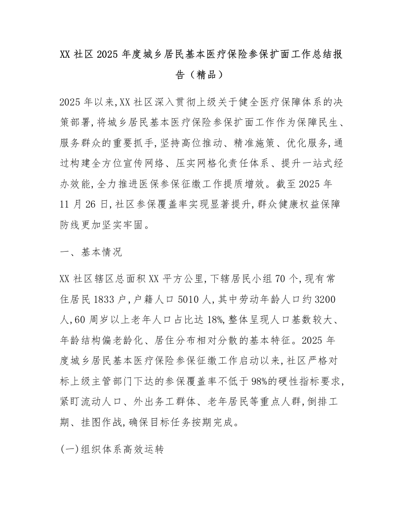 XX社区2025年度城乡居民基本医疗保险参保扩面工作总结报告(精品)