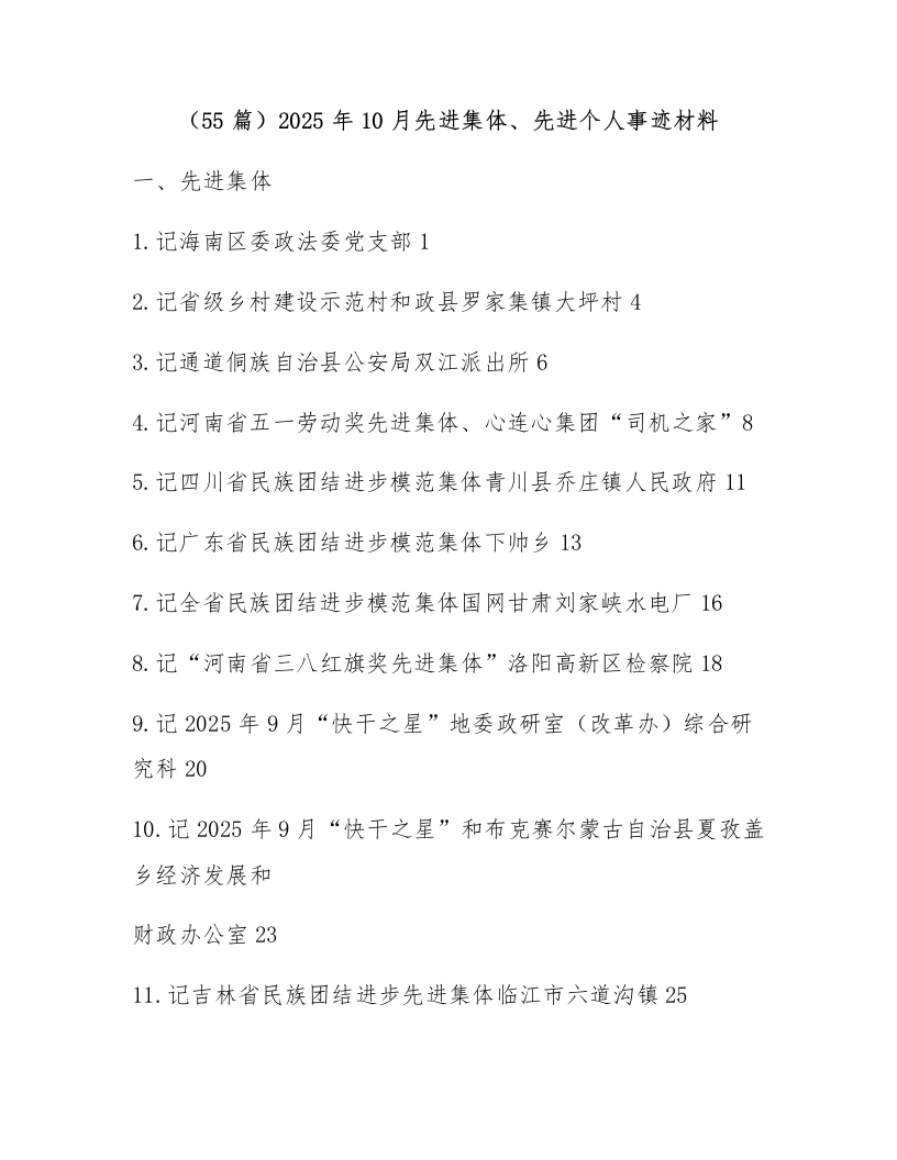 首页材料汇编综合材料(55篇)2025年10月先进集体、先进个人事迹材料