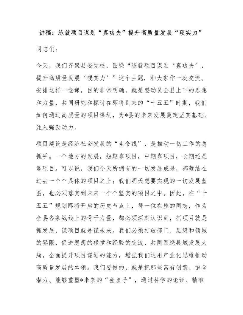 讲稿:练就项目谋划“真功夫”提升高质量发展“硬实力”