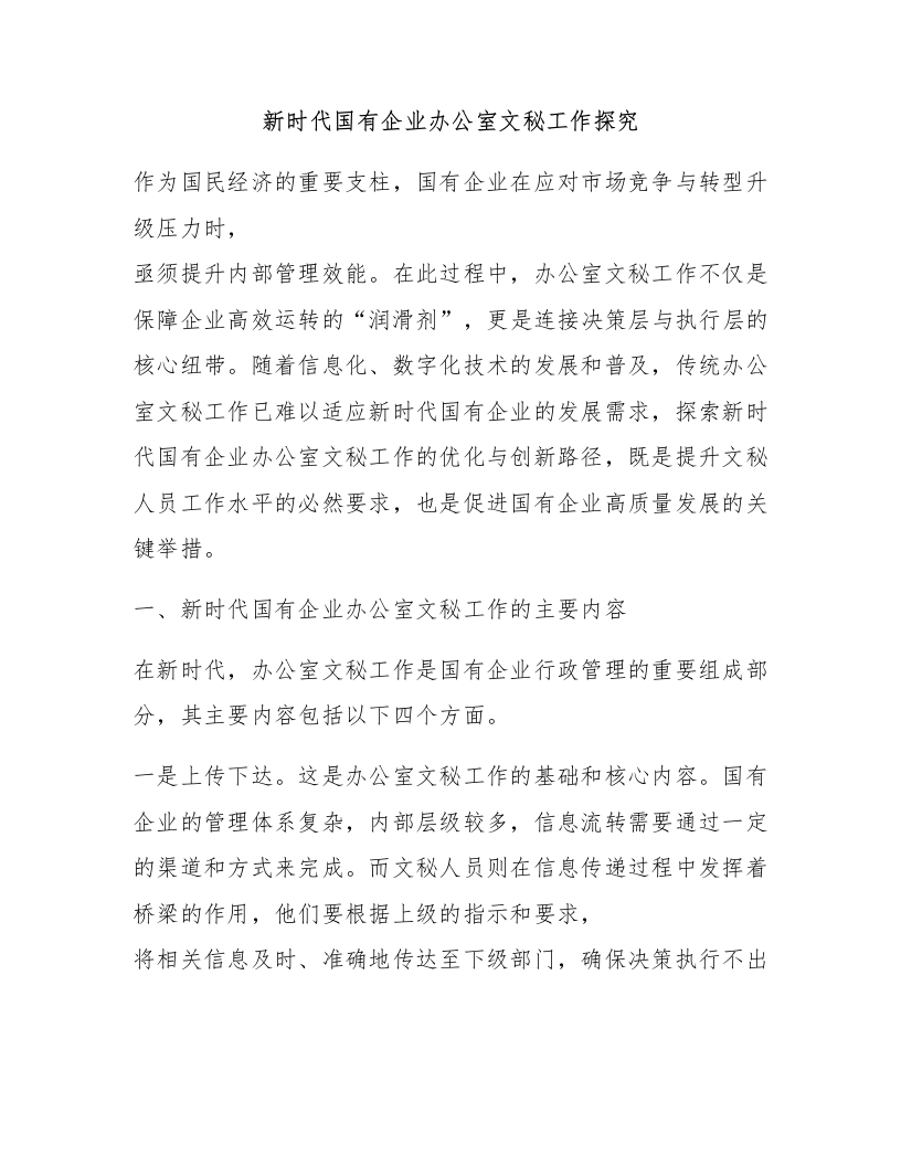 首页材料汇编综合材料新时代国有企业办公室文秘工作探究