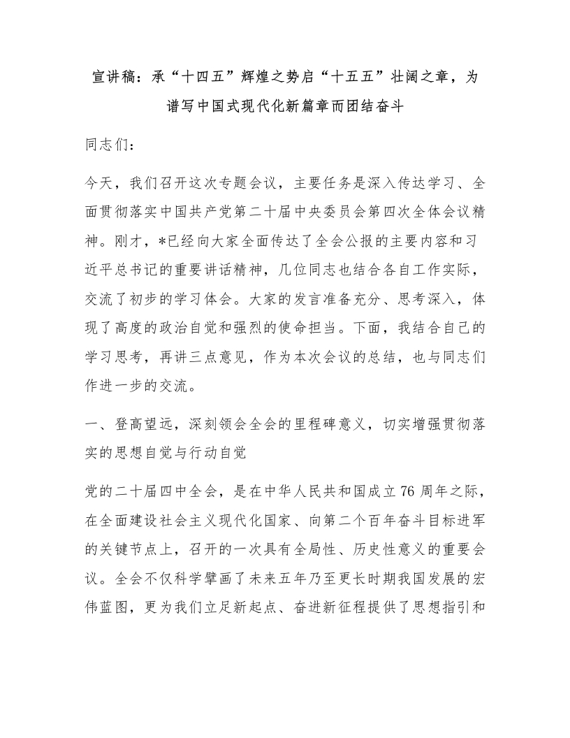 宣讲稿:承“十四五”辉煌之势启“十五五”壮阔之章,为谱写中国式现代化新篇章而团结奋斗