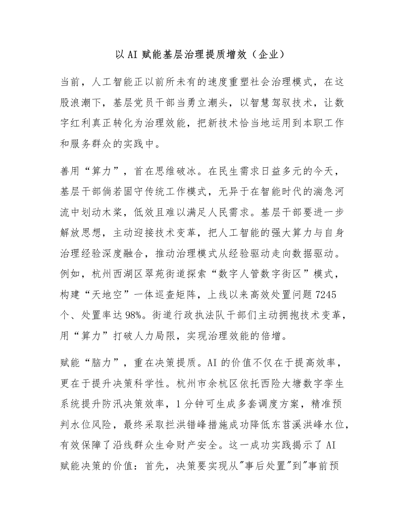 首页材料汇编综合材料以AI赋能基层治理提质增效(企业)