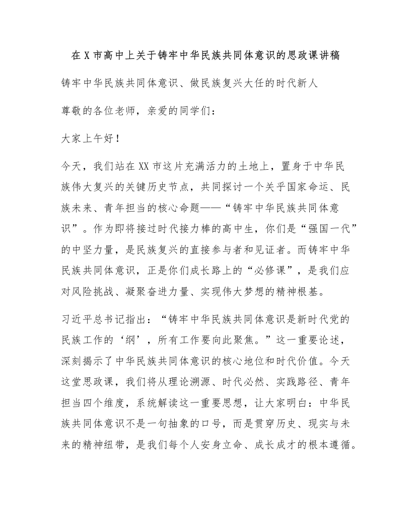 在X市高中上关于铸牢中华民族共同体意识的思政课讲稿