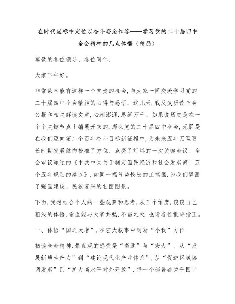 在时代坐标中定位以奋斗姿态作答——学习党的二十届四中全会精神的几点体悟(精品)