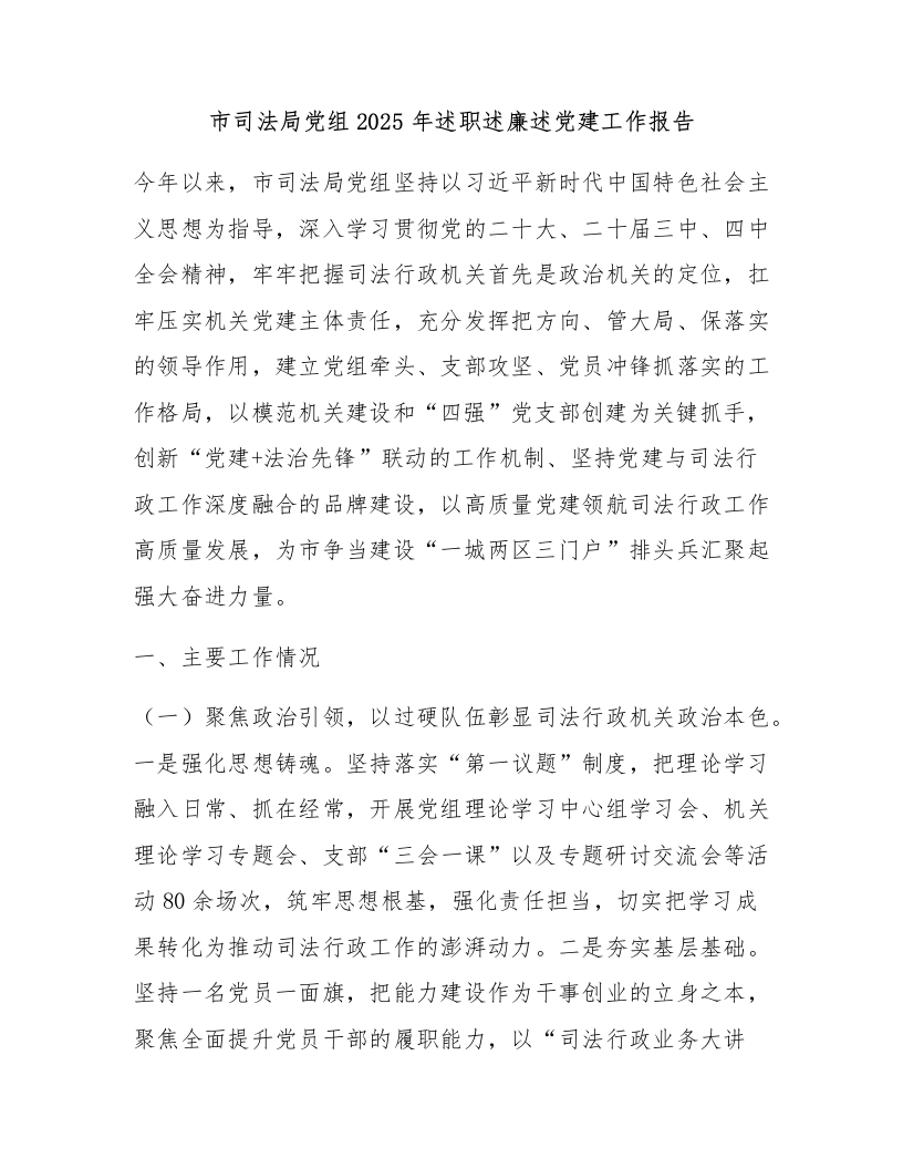 市司法局党组2025年述职述廉述党建工作报告