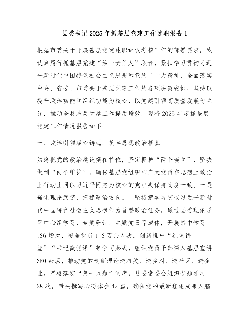 首页党建专栏党建党课县委书记2025年抓基层党建工作述职报告1
