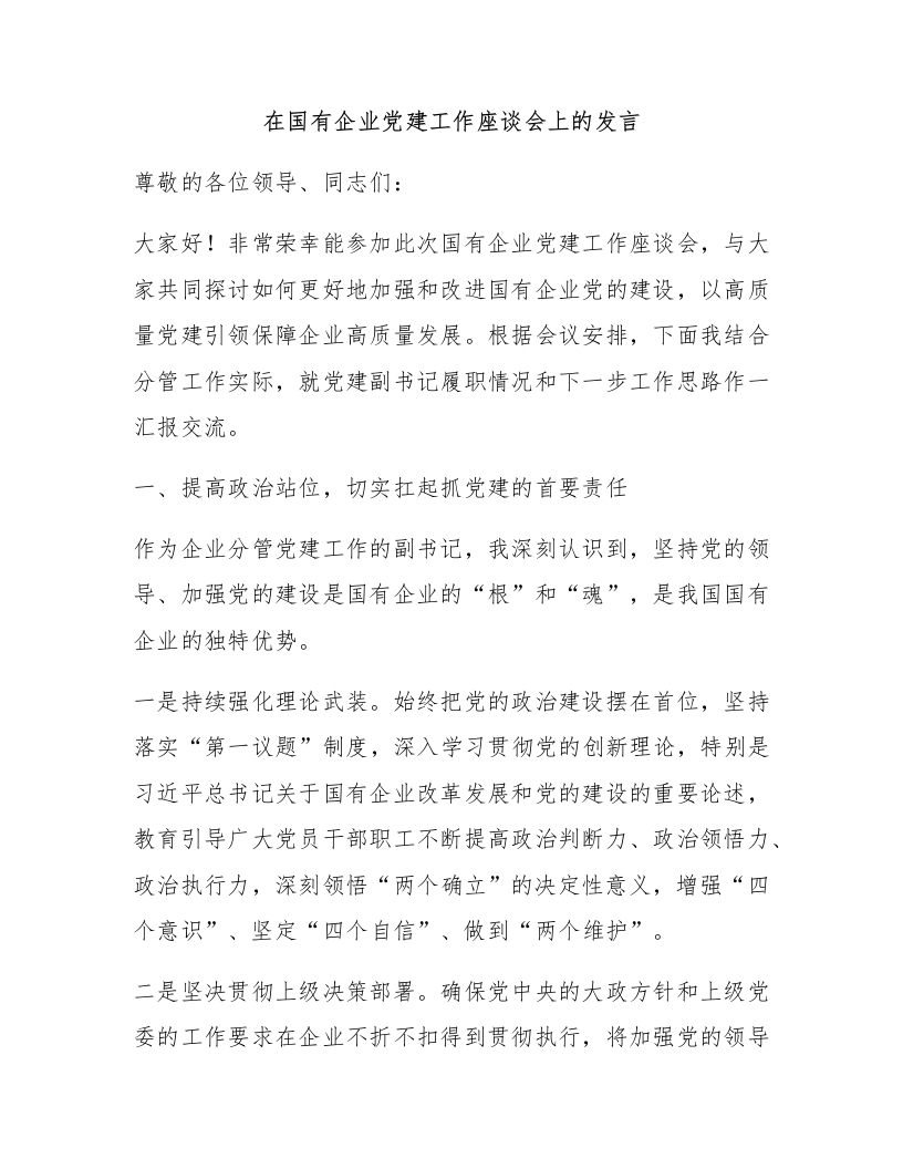 首页党建专栏党建党课在国有企业党建工作座谈会上的发言