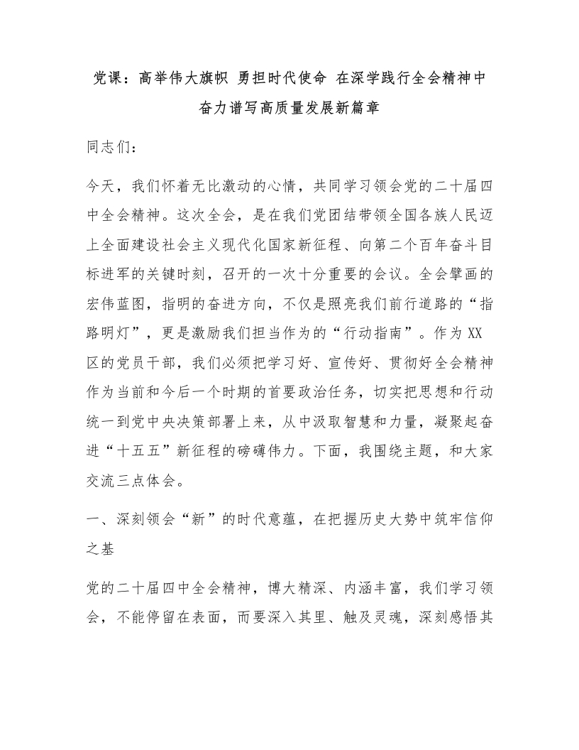 党课:高举伟大旗帜 勇担时代使命 在深学践行全会精神中奋力谱写高质量发展新篇章