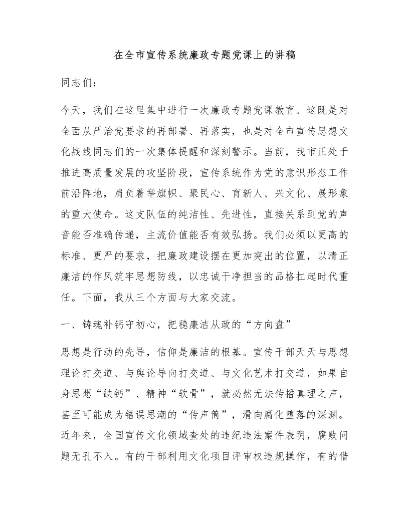 首页党建专栏党课讲稿在全市宣传系统廉政专题党课上的讲稿