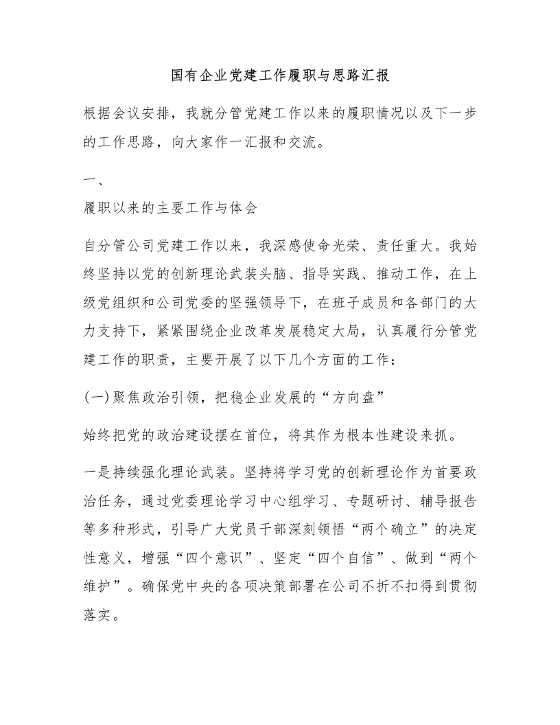 首页报告总结工作汇报国有企业党建工作履职与思路汇报