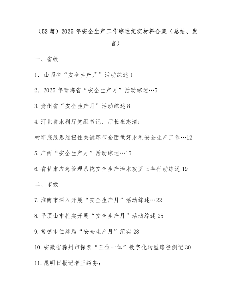(52篇)2025年安全生产工作综述纪实材料合集(总结、发言)