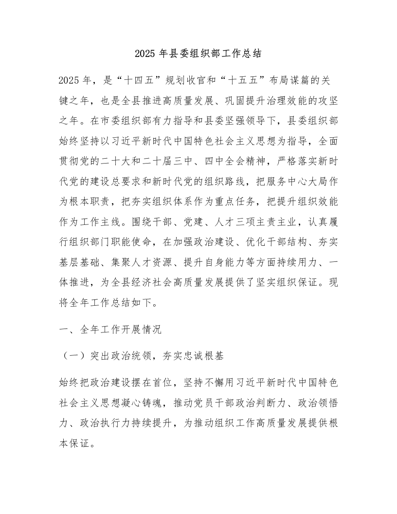 2025年县委组织部工作总结