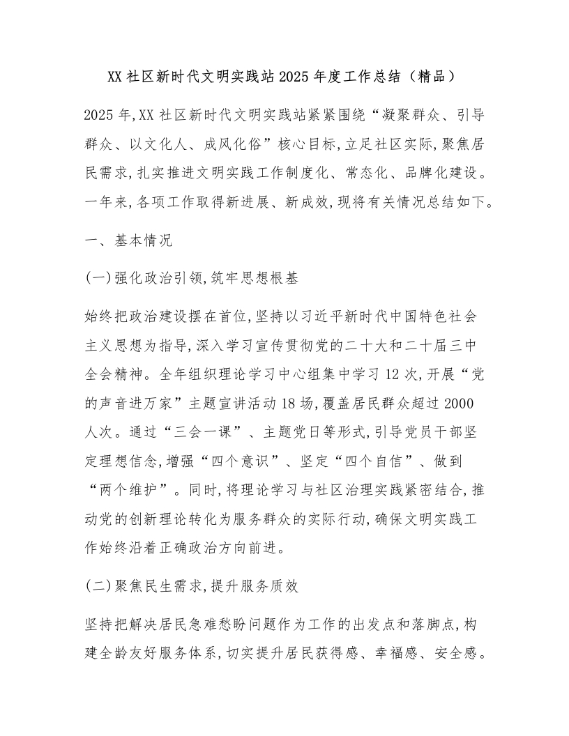 XX社区新时代文明实践站2025年度工作总结(精品)