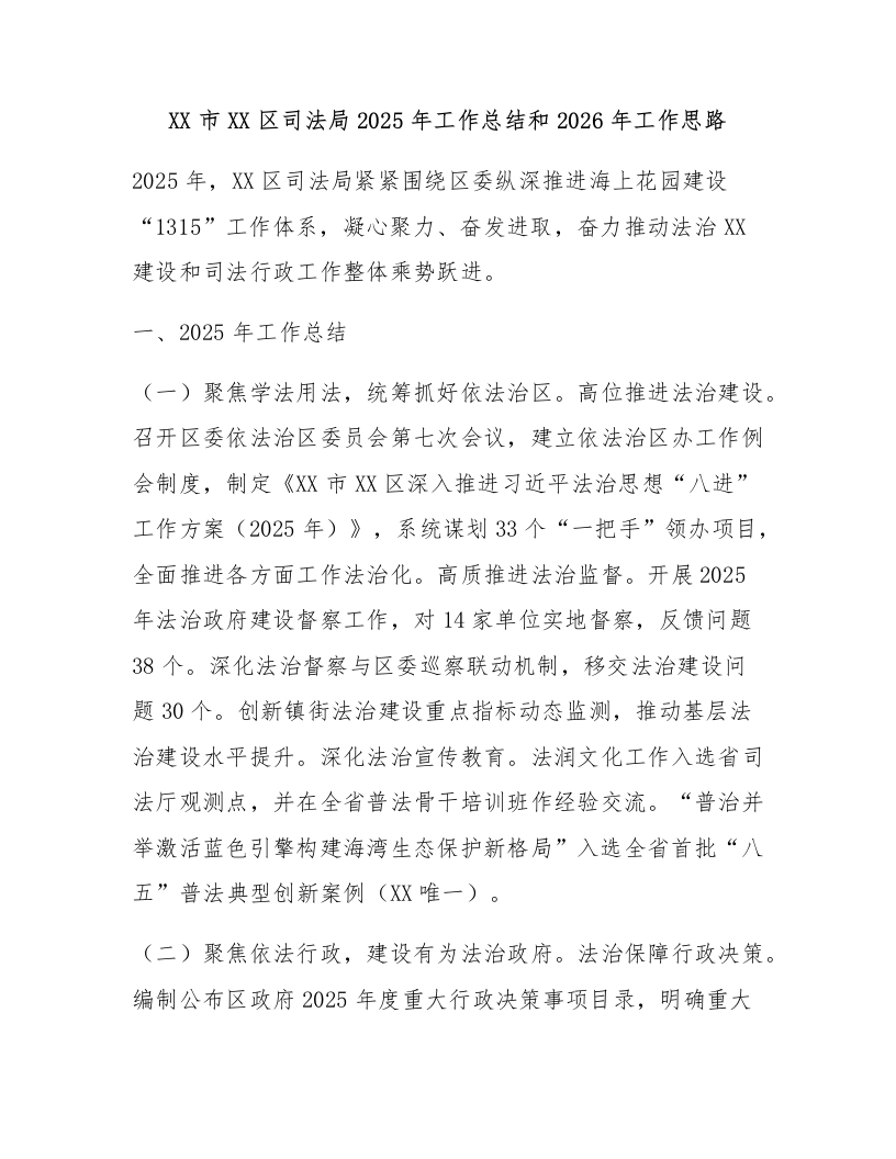 XX市XX区司法局2025年工作总结和2026年工作思路