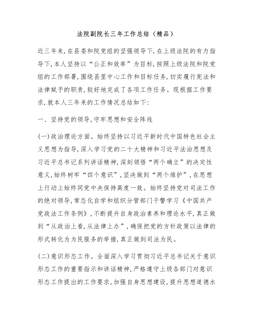 法院副院长三年工作总结(精品)