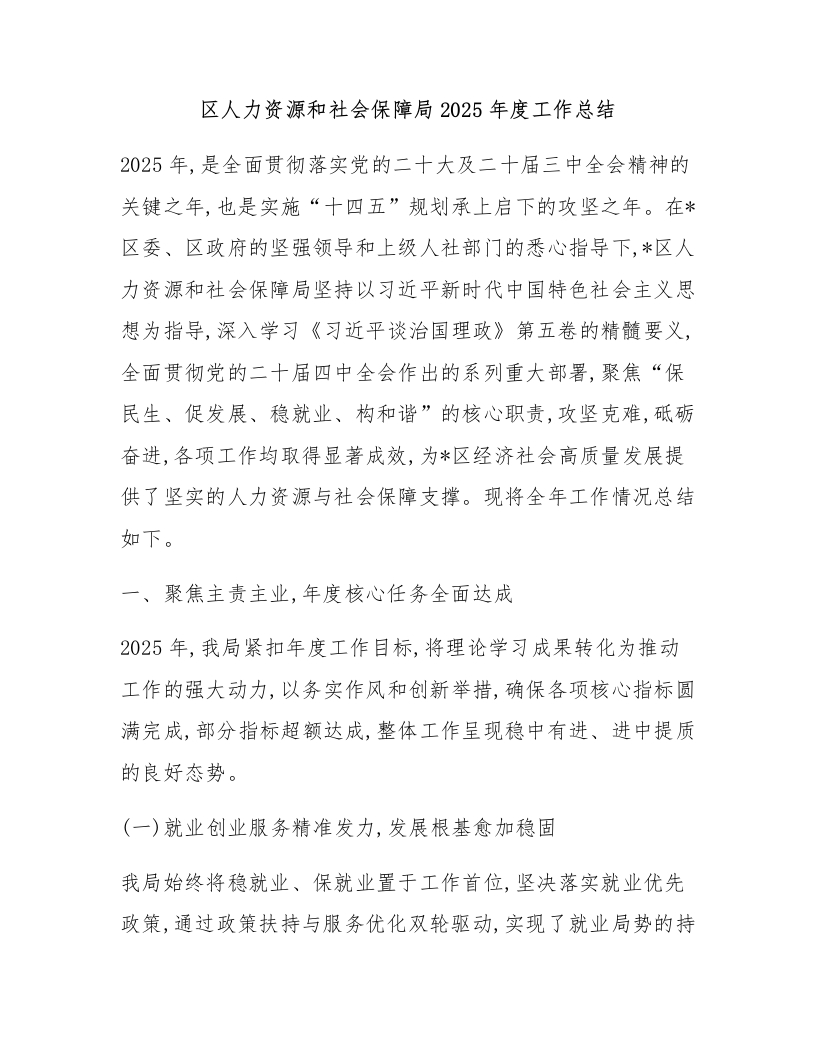 首页热门分类工作总结区人力资源和社会保障局2025年度工作总结