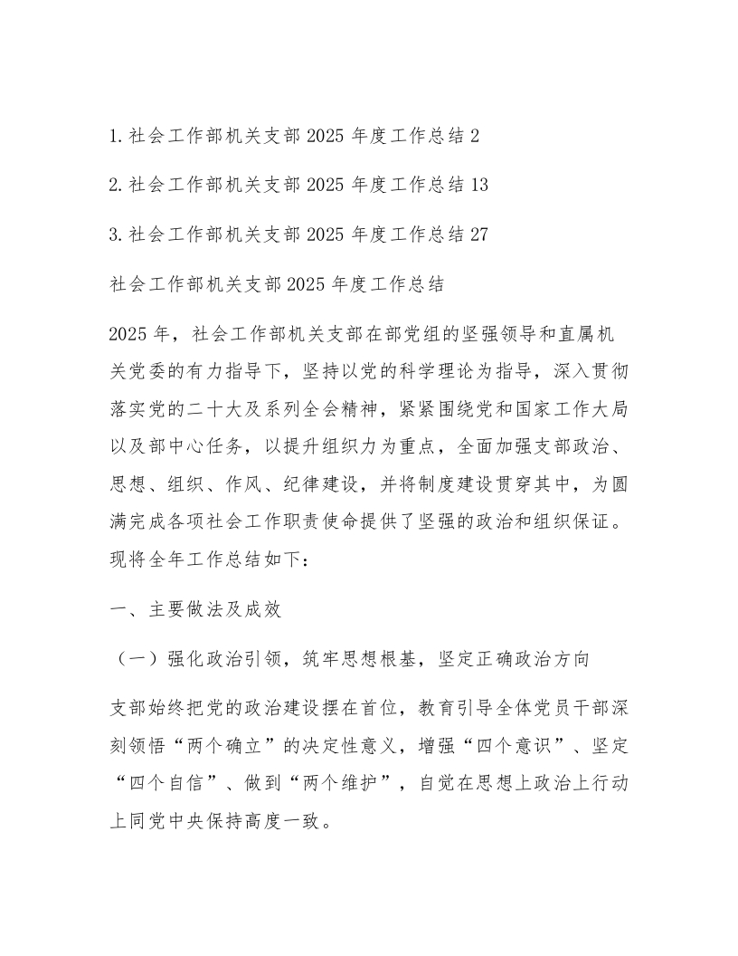 首页热门分类工作总结社会工作部机关支部2025年度工作总结汇编