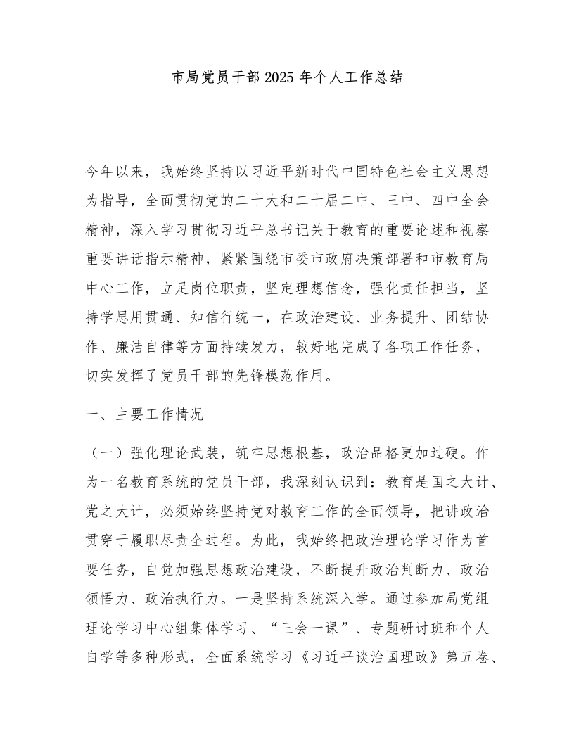 首页热门分类工作总结市局党员干部2025年个人工作总结