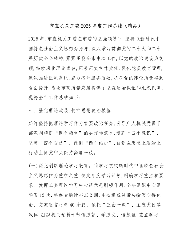 市直机关工委2025年度工作总结(精品)
