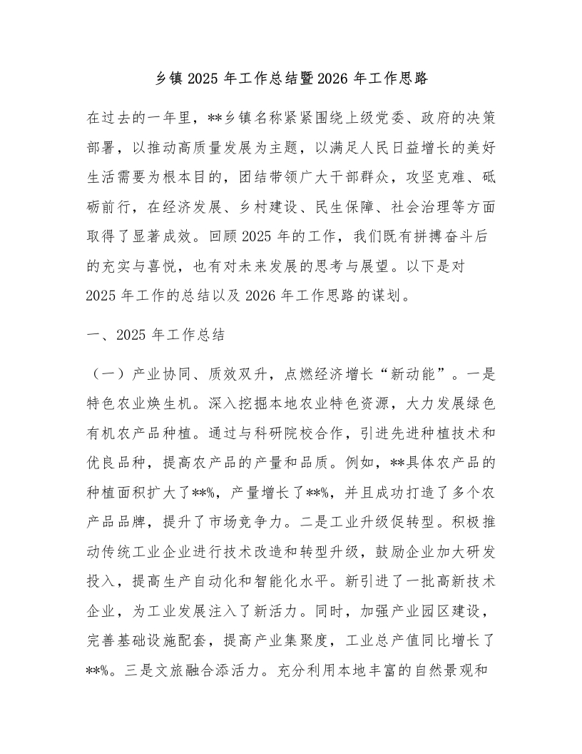 首页热门分类工作总结乡镇2025年工作总结暨2026年工作思路
