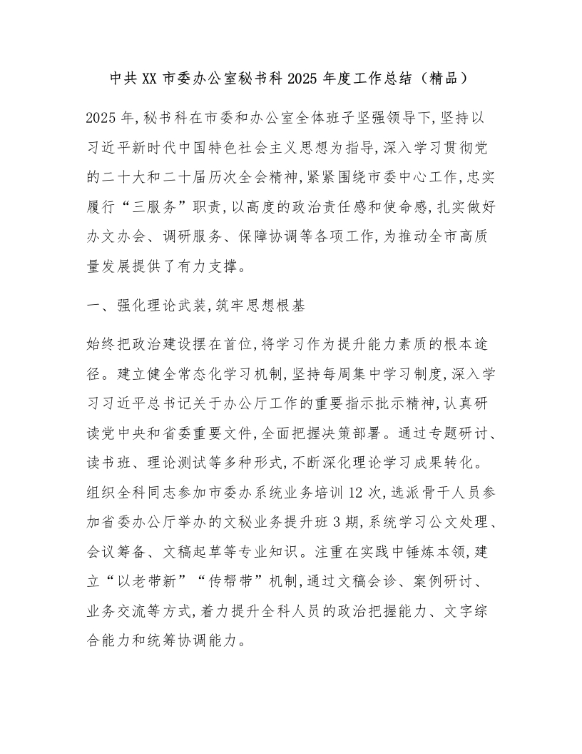 中共XX市委办公室秘书科2025年度工作总结(精品)