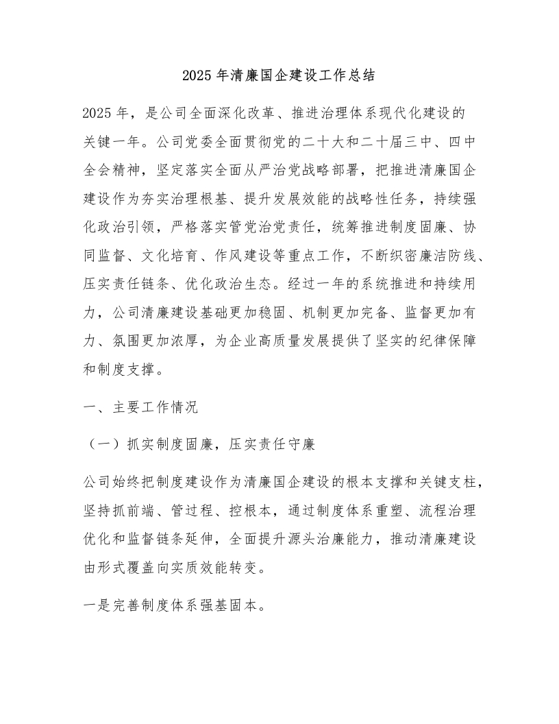首页国企银行专区国企材料2025年清廉国企建设工作总结