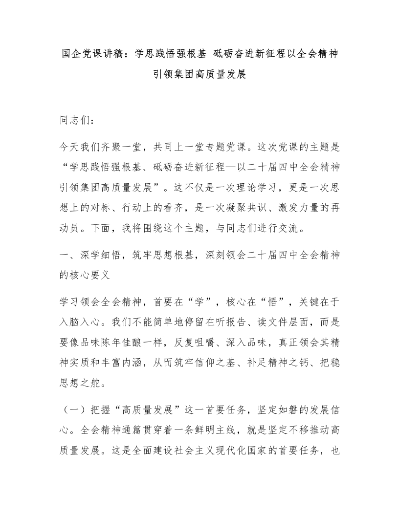 国企党课讲稿:学思践悟强根基 砥砺奋进新征程以全会精神引领集团高质量发展
