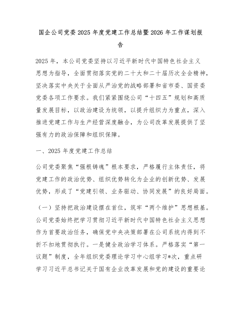 首页国企银行专区国企材料国企公司党委2025年度党建工作总结暨2026年工作谋划报告