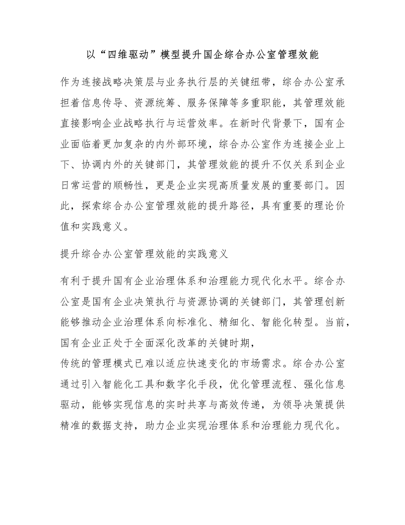 首页国企银行专区国企材料以“四维驱动”模型提升国企综合办公室管理效能