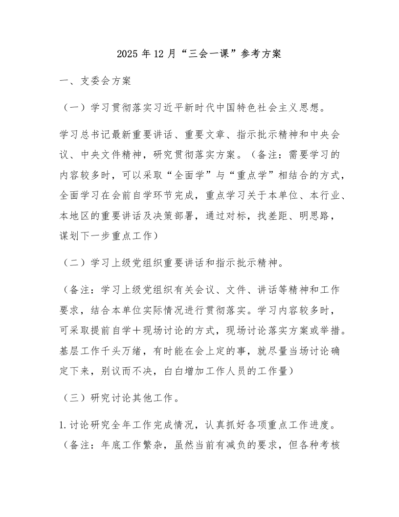 2025年12月“三会一课”参考方案